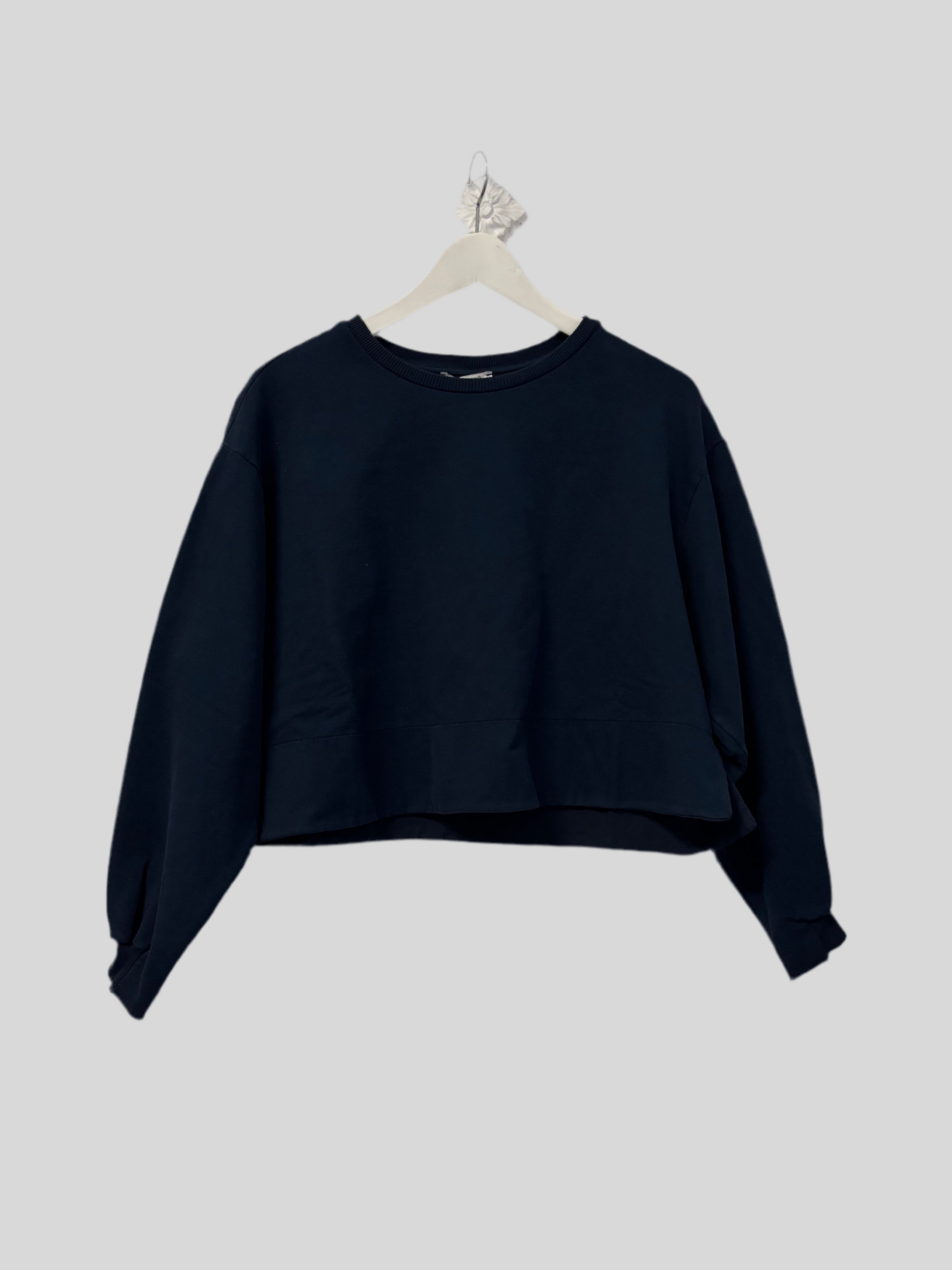 Felpa crop TreBarraBi m/l blu notte girocollo; spacchetti sul fondo (Farnia Felgar).